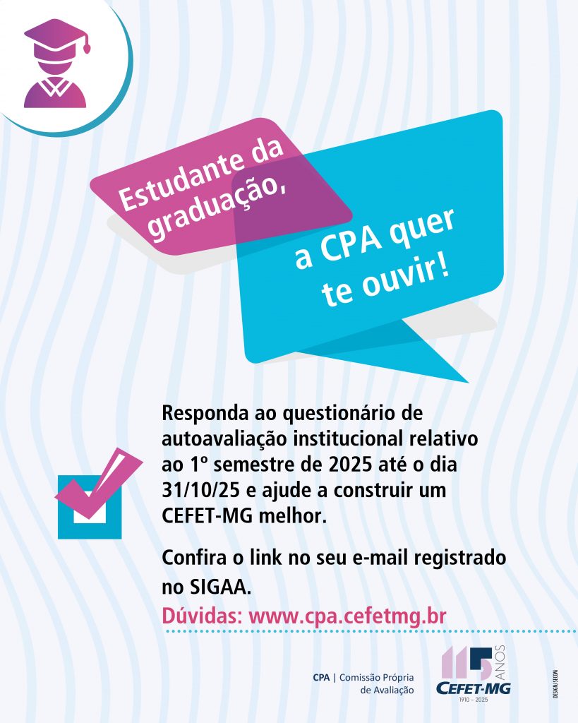 A avaliação dos cursos da graduação do CEFET-MG está sendo realizada no mês de outubro de 2025.